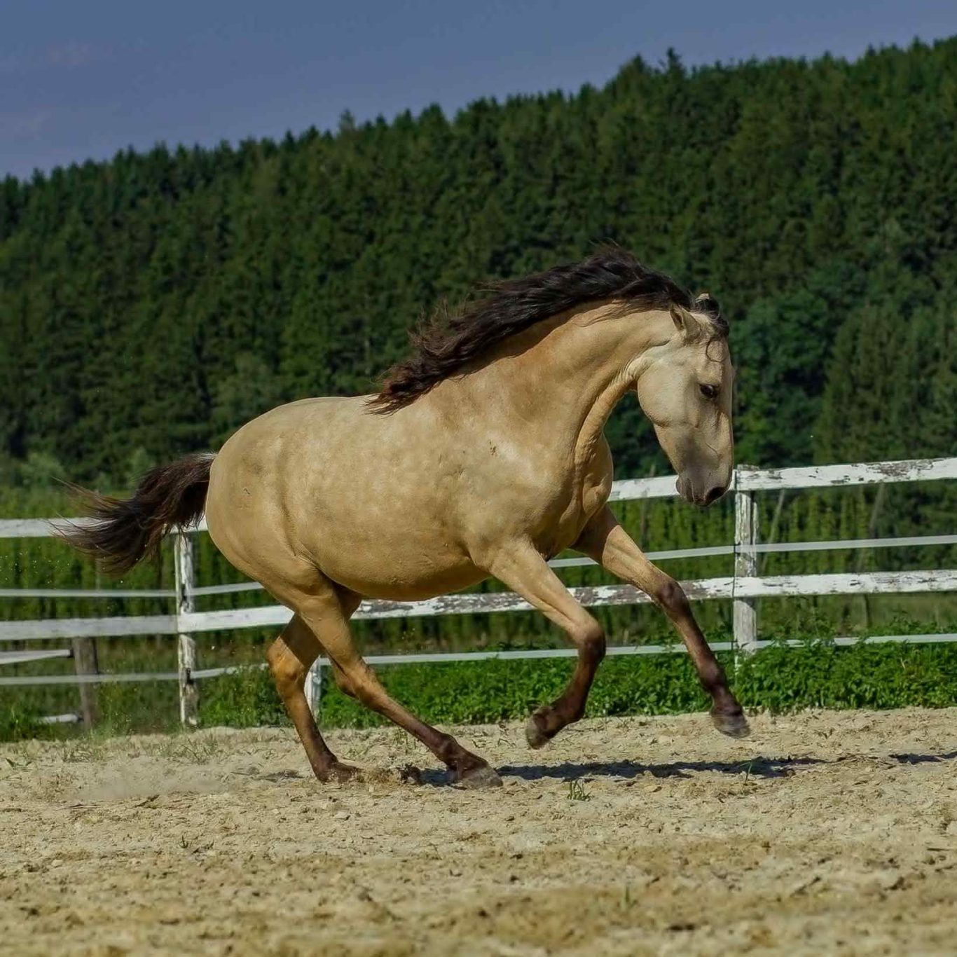 Sie ist willensstark, zutraulich aber nicht verschmust und gerne lange im Gelände unterwegs. Sie verbringt gerne Zeit mit dem Shetty Max in einem Offenstall mit 8 anderen Pferden. Das Reiten steht bei uns nicht im Vordergrund.